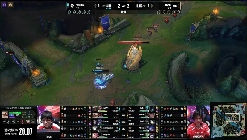 虎扑04月08日讯 【GAME2】TES蓝色方;WE红色方